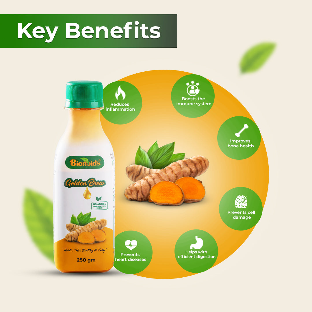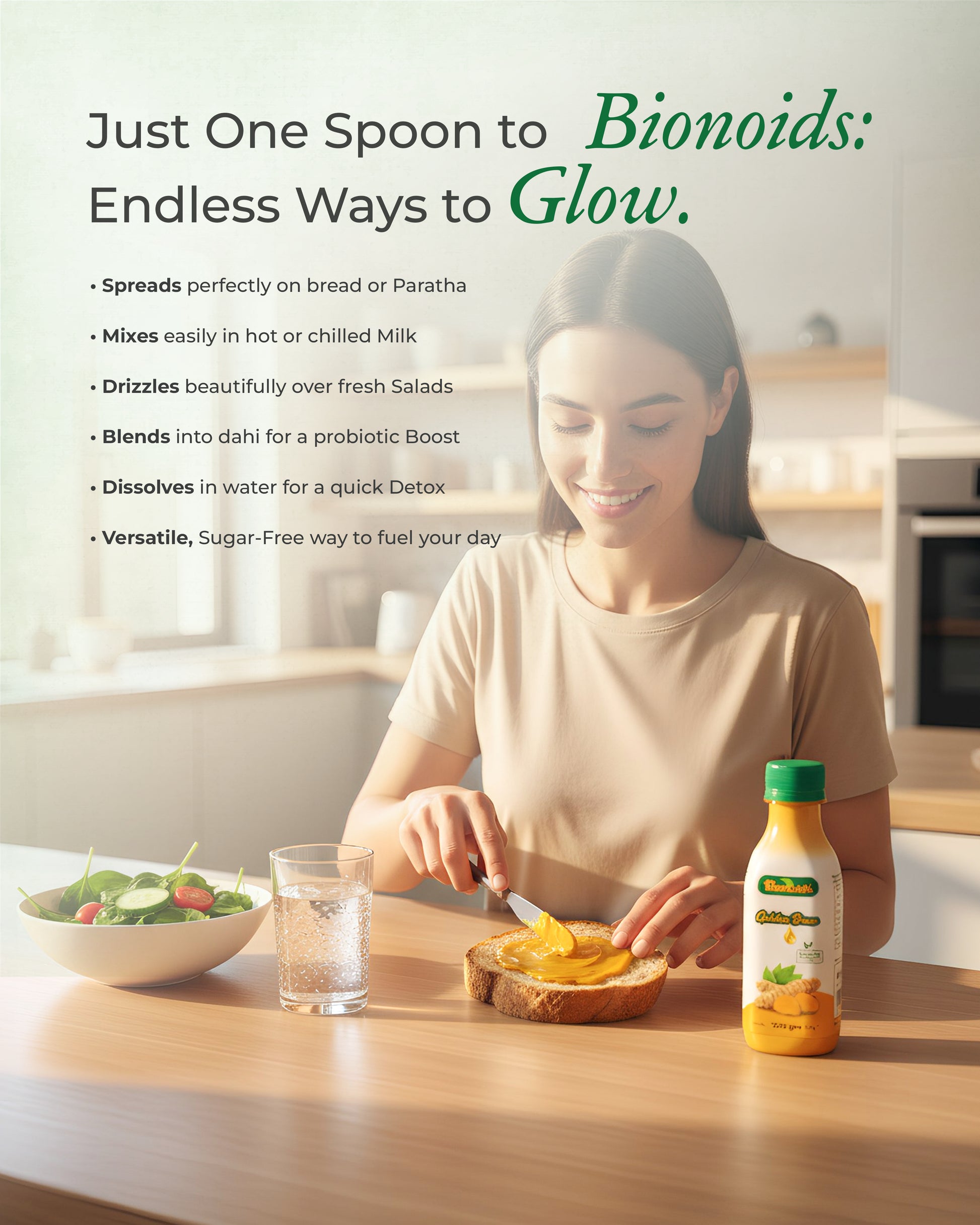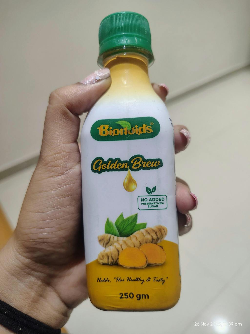 Pour 100 ml of milk into a glass and add 7.5 ml of Bionoids Golden Brew
